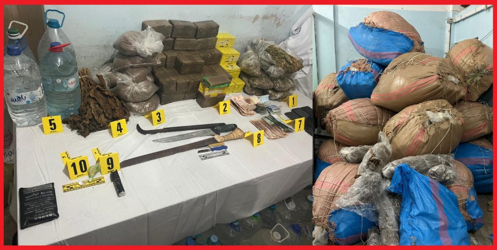 وقد تم تنفيذ هذه العملية الأمنية بالمنطقة القروية “الكديات” بإقليم اشتوكة أيت باها، حيث تم العثور بحوزة المشتبه فيهم على 25 كيلوغراما من مخدر الشيرا و650 كيلوغراما من مخدر الكيف و80 كيلوغراما من مسحوق التبغ المهرب، فضلا عن 95 لترا من مسكر ماء الحياة وجرعات من مخدر الكوكايين.